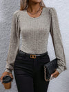 Delicada e sofisticada, essa blusa é perfeita para quem valoriza elegância com feminilidade. O destaque fica por conta da renda nas costas, que adiciona um ar romântico e surpreendente ao visual. As mangas longas com detalhe drapeado trazem movimento e leveza, criando uma silhueta sutilmente refinada. Ideal para compor looks versáteis, do casual chique ao elegante com salto e acessórios.